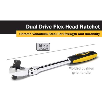 Titan 12358 Dual Drive 3/8″ and 1/2″ x 9-1/2″ Flex Head Ratchet – 72 Tooth