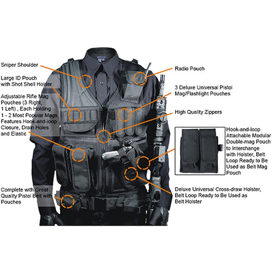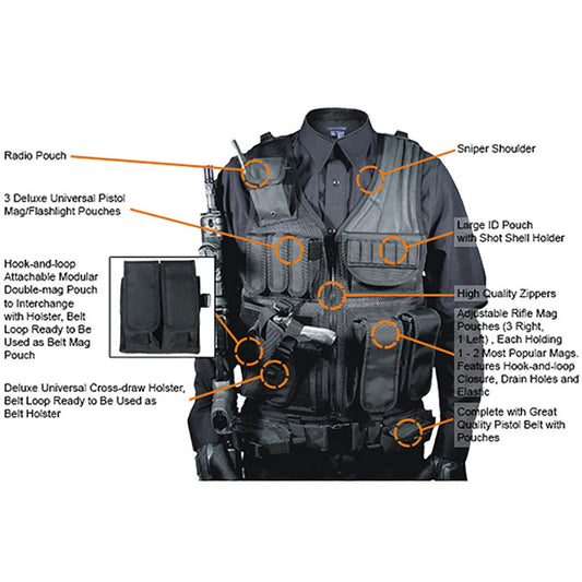 UTG PVCV547BL 547 Law Enforcement Tactical Vest Left Handed Black