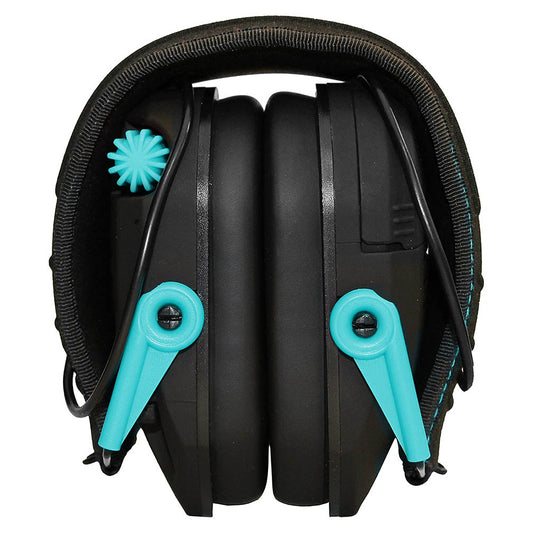Walker's GWPRSEMTL Razor Slim Electronic Muff - Black W/ Teal Accent