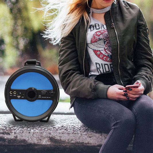 AXESS SPBT1040BL Portable Bluetooth Cylinder Loud Speaker Built-In 6" Sub Blue