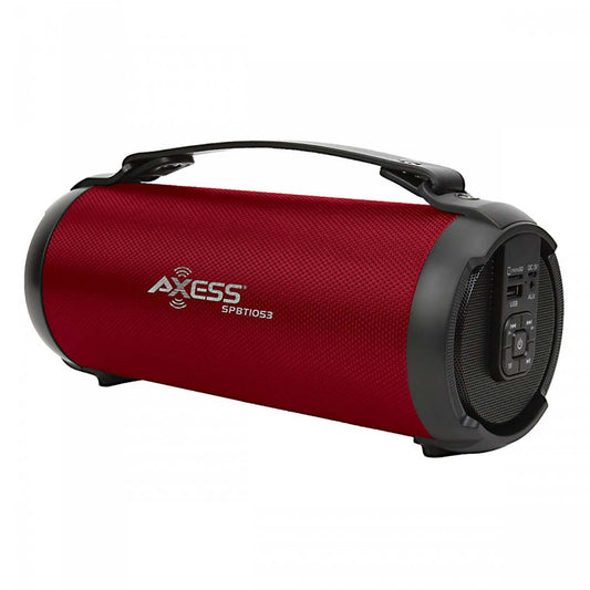 Axess SPBT1041RD Portable Bluetooth Cylinder Loud Speaker w/ FM USB AUX Red