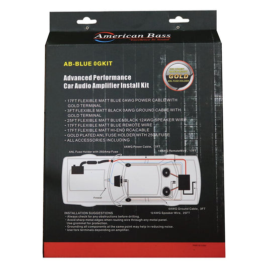 American Bass ABBLUE0GKIT 0 Gauge Wiring Kit, 250A ANL Fuse