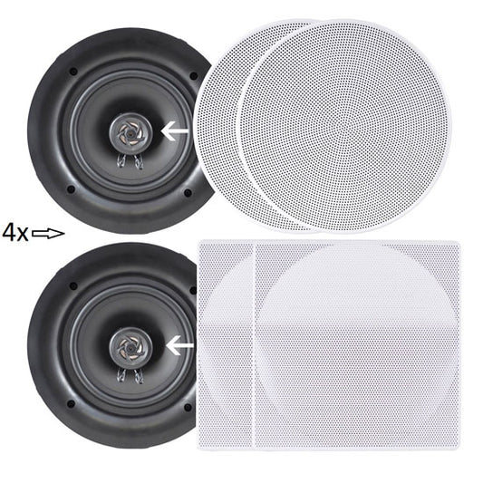4 Pairs 200W 6.5" In-Ceiling Speakers w/ 300W Receiver/Amplifier & 4 Ch Selector