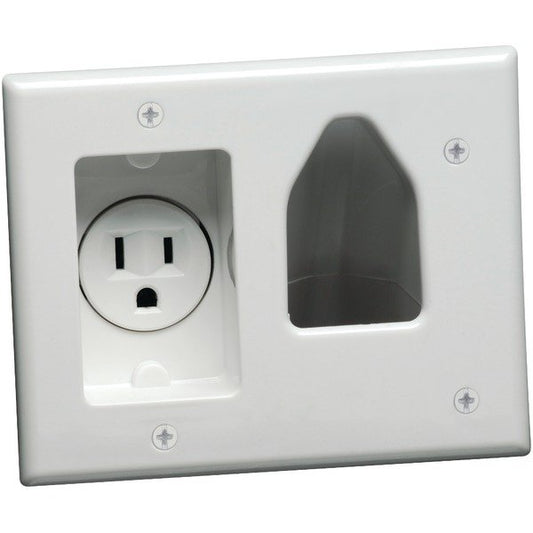 DATACOMM ELECTRONICS 45-0001-WH 1-Gang Recessed Cable Plate (White)