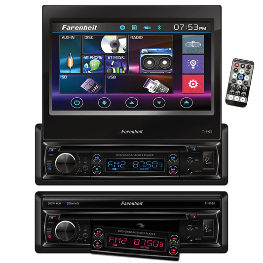 Farenheit TI895B Single Din 7" Flip out Touchscreen with DVD & BT