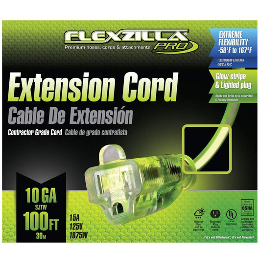 Flexzilla FZ512935 Pro Extension Cord 10/3 Awg Sjtw 100Ft Outdoor Lighted Plug