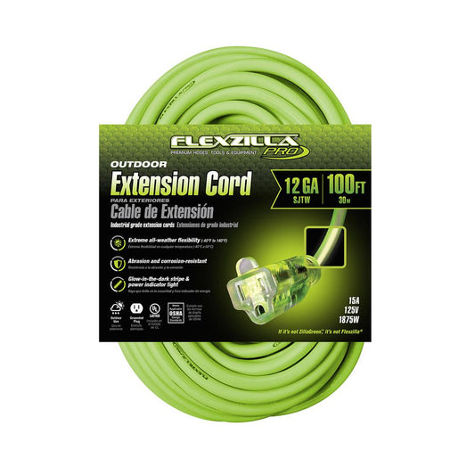Flexzilla FZ512835 Pro Extension Cord 12/3 Awg Sjtw 100Ft Outdoor Lighted Plug