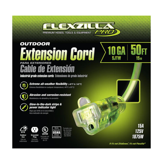 Flexzilla FZ512930 Pro Extension Cord 10/3 Awg Sjtw 50Ft Outdoor Lighted Plug