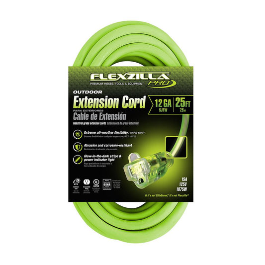 Flexzilla FZ512825 Pro Extension Cord 12/3 Awg Sjtw 25Ft Outdoor Lighted Plug