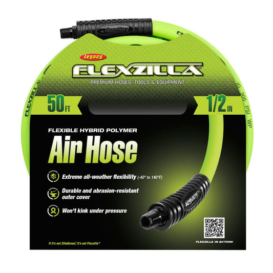 Flexzilla HFZ1250YW4 Air Hose 1/2In X 50Ft 1/2In MNPT Fittings