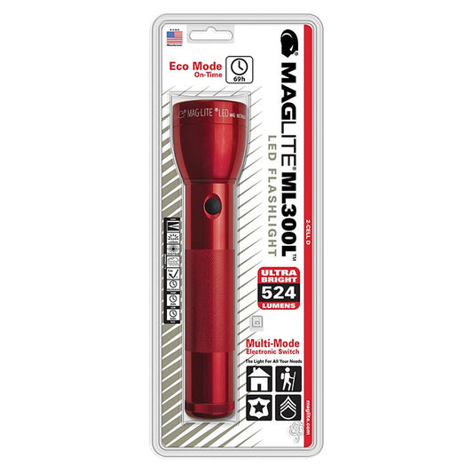 Maglite ML300LS2036 2 Cell D Led Flashlight Red-Blister Pack