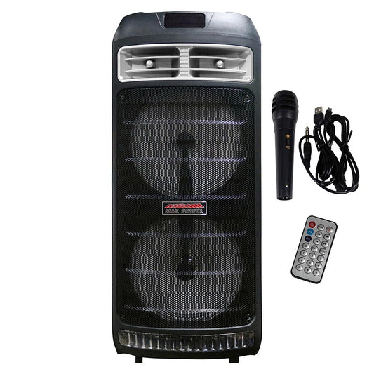 Maxpower MPD819BK Black Dual 8" Bluetooth Wired Mic Front Flashing Lights