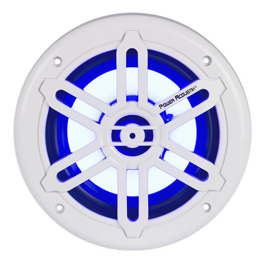 Power Acoustik MFL65WB Marine 6.5 2-Way Speaker w/Blue LED, White & Black Grills