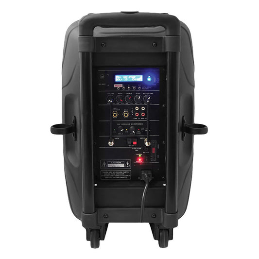 Pyle PPHP159WMU 15'' 1600 Watt Bluetooth Portable Loudspeaker System w/ Built-in Rechargeable Battery & 2 Wireless Mics
