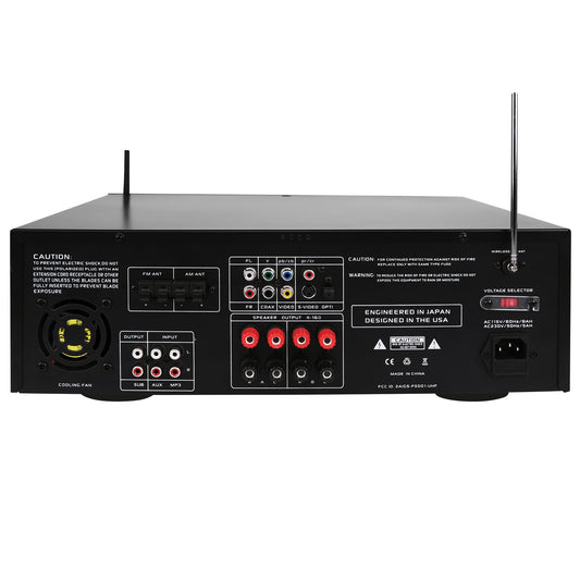PYLE PWMA5000BA 4Ch 3000W Rack Home Theater Preamp Receiver w/BT & 2 UHF Mics