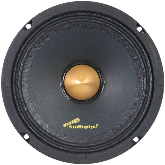 Audiopipe APMB628PG Low Mid Frequency Loudspeaker 6" 200W Max Each - Gold Bullet Dust Cap