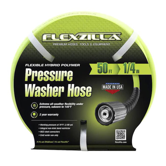 Flexzilla HFZPW3450M Pressure Washer Hose 1/4In X 50’ M22 Fittings