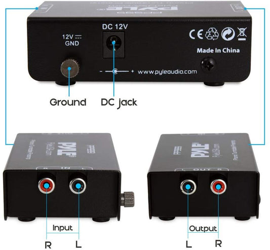 Pyle PP999 Compact Ultra-Low Noise Phono Turntable Preamp w/ 12-Volt Adaptor
