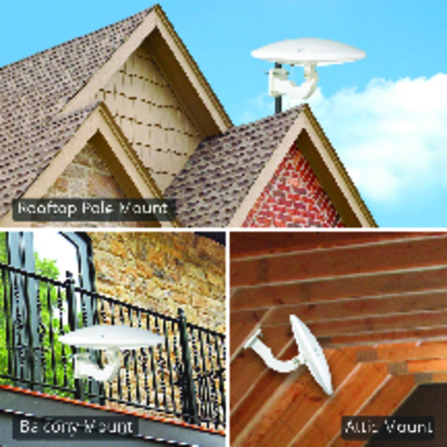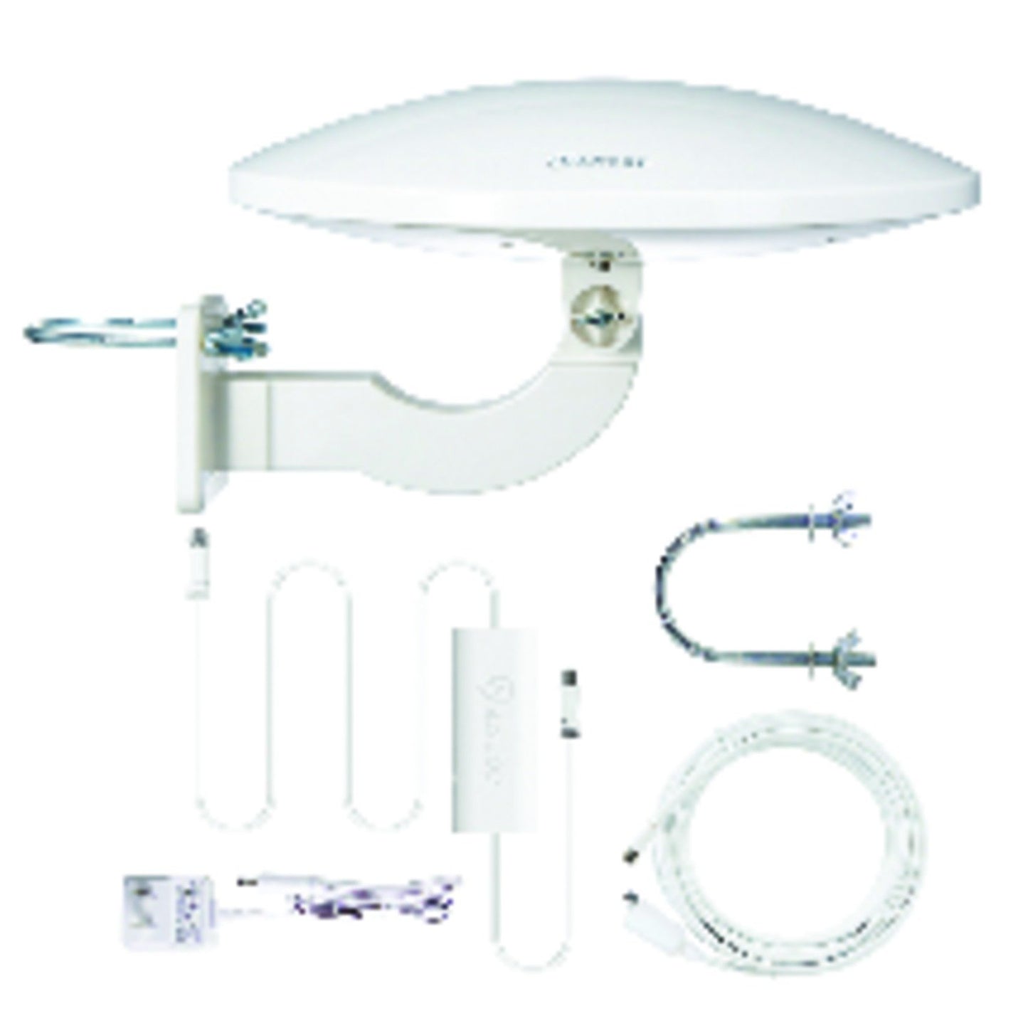 Includes AC/DC power adapter, power inserter with smart switch, outdoor bracket, mast clamp kits, 33ft coaxial cable & instruction manual