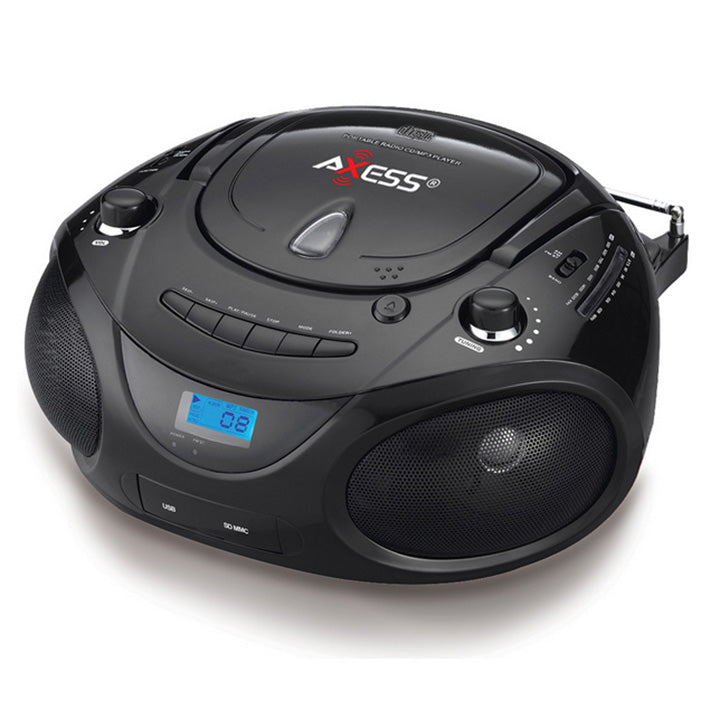 Axess PB2703BK Portable MP3/CD/USB/SD Boombox with AMFM Stereo Black