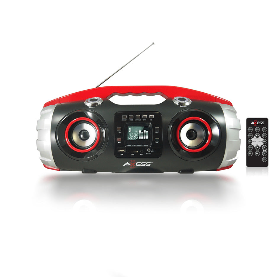AXESS PBBT2709RD Portable Bluetooth FM Radio CD MP3 USB Heavy Bass Boombox Red