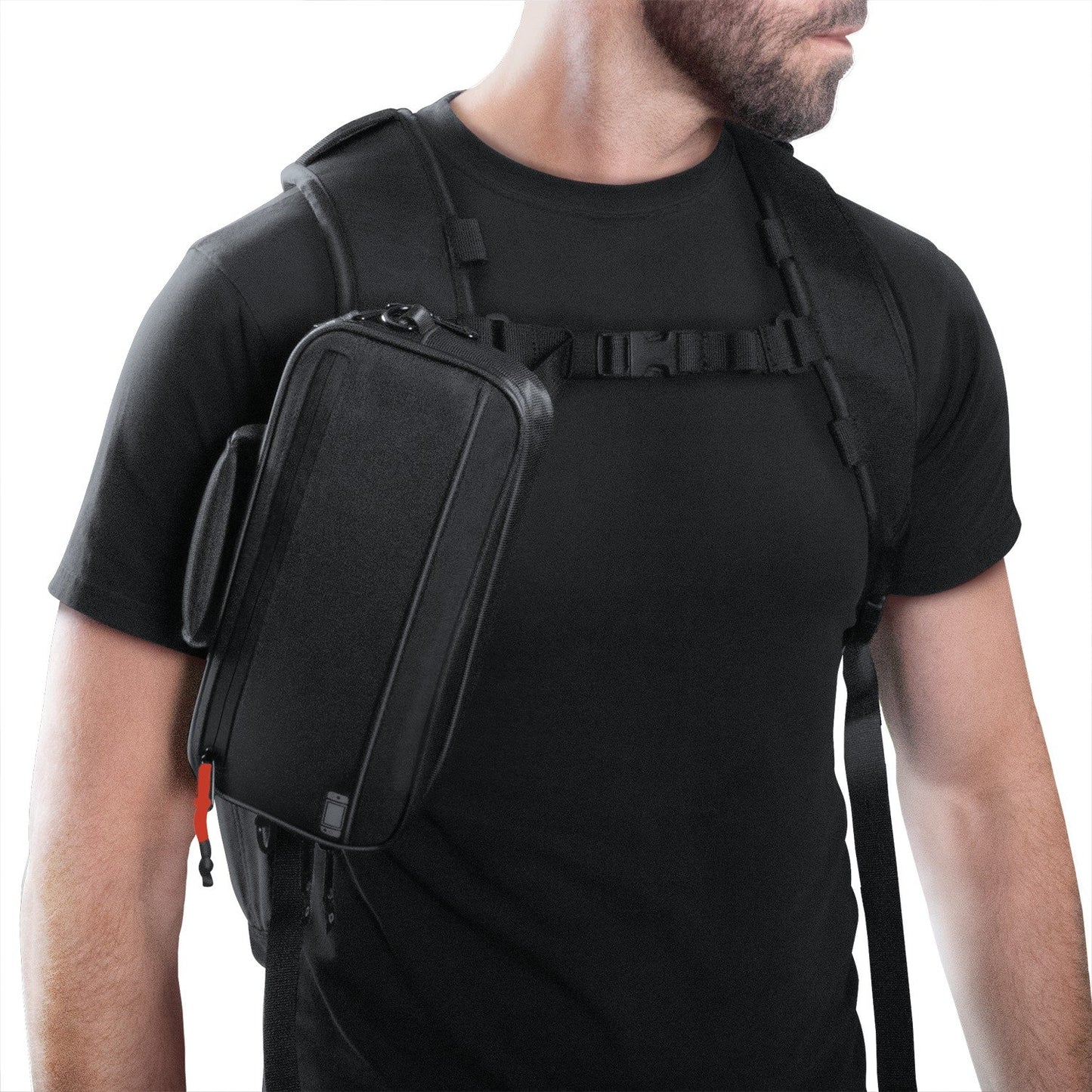 Additional large zippered compartment provides mesh storage pocket, dedicated cartridge slots, and built-in cable wrap