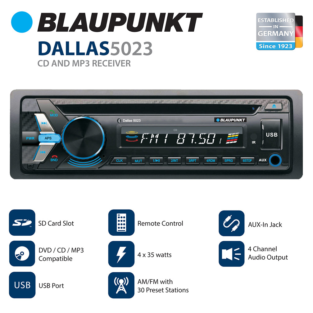 Blaupunkt Head unit AM/FM/CD/BT/USB/Remote/ Detachable Face