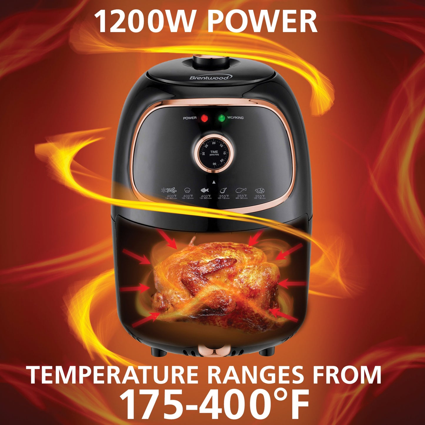 Brentwood App. AF-202BKC 2qt 1200W Air Fryer Timer & Temp. Control Black/Copper