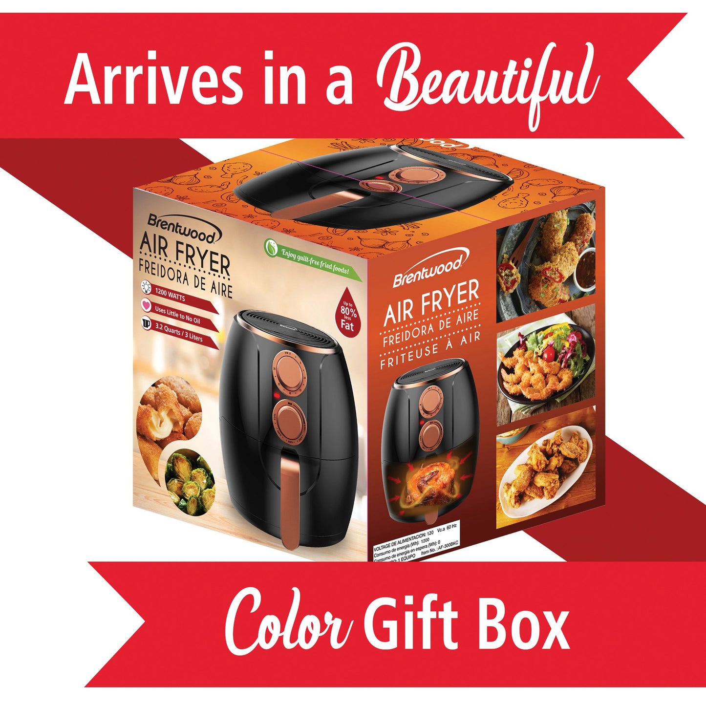 Brentwood App. AF-300BKC 3.2qt 1200W Air Fryer Timer & Temp Control Black/Copper