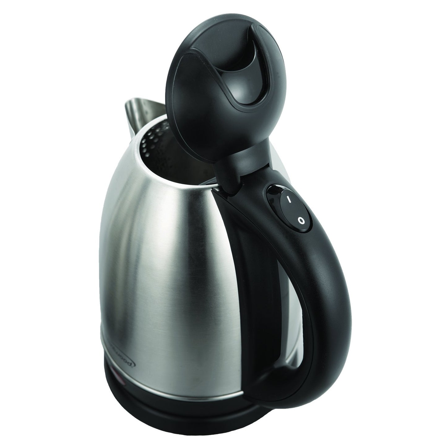 The Brentwood Appliances' KT-1780 1-1/2 L. Stainless Steel Cordless Electric Kettle boils water faster than a microwave and safer than a stove top kettle. Water boils within minutes with a single push of a button. The cordless kettle lifts off the 360° swivel base for easy filling and pouring. Now you can conveniently make hot tea, French press or pour-over coffee, instant oatmeal and more. Its full stainless steel interior, concealed heating element and BPA free parts keeps water free of impurities. This brushed stainless steel electric kettle Includes boil dry and overheat protection for added safety, and it automatically shuts off once water reaches a boil.