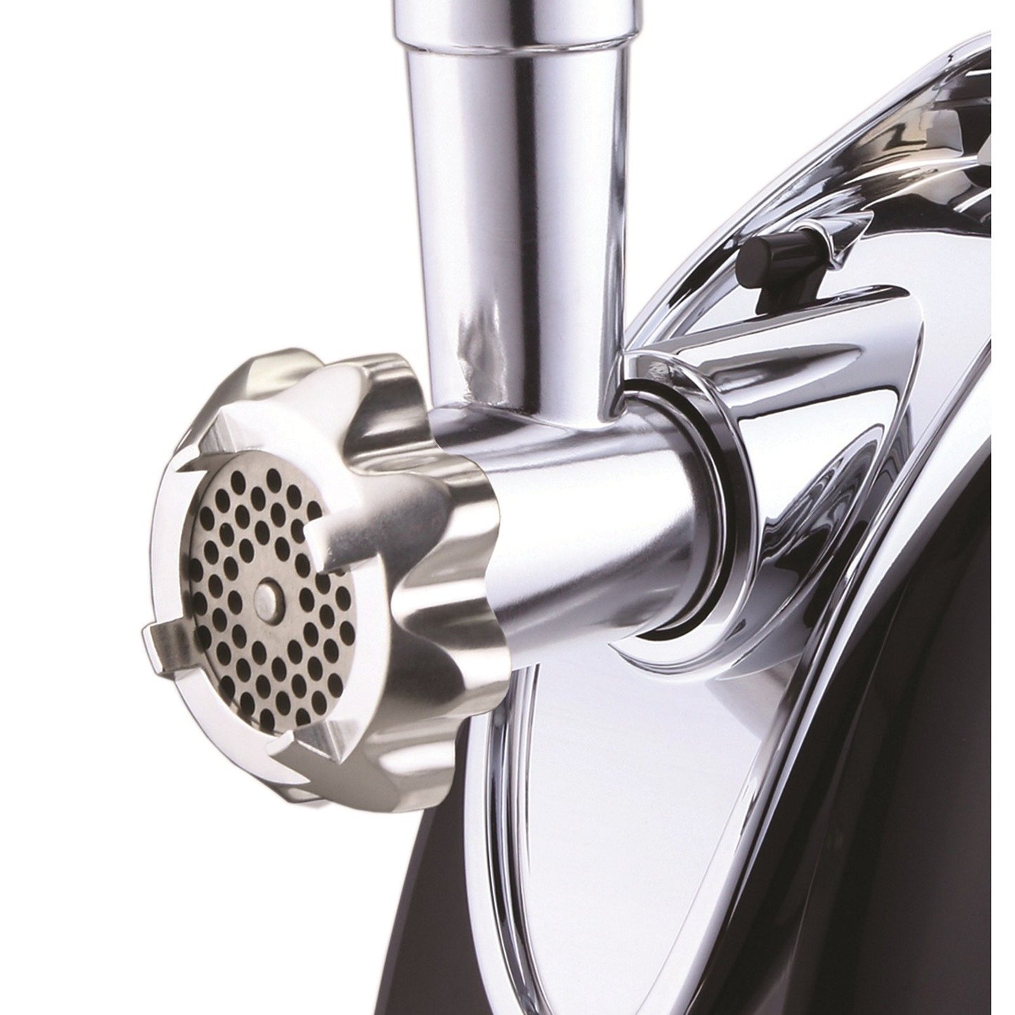 Introducing Brentwood's professional-grade Meat Grinder. This powerful, 400-watt black meat grinder comes with stainless steel cutting blades to grind through your toughest meats. It also includes an internal circuit breaker for safety and rubber feet to ensure stability.