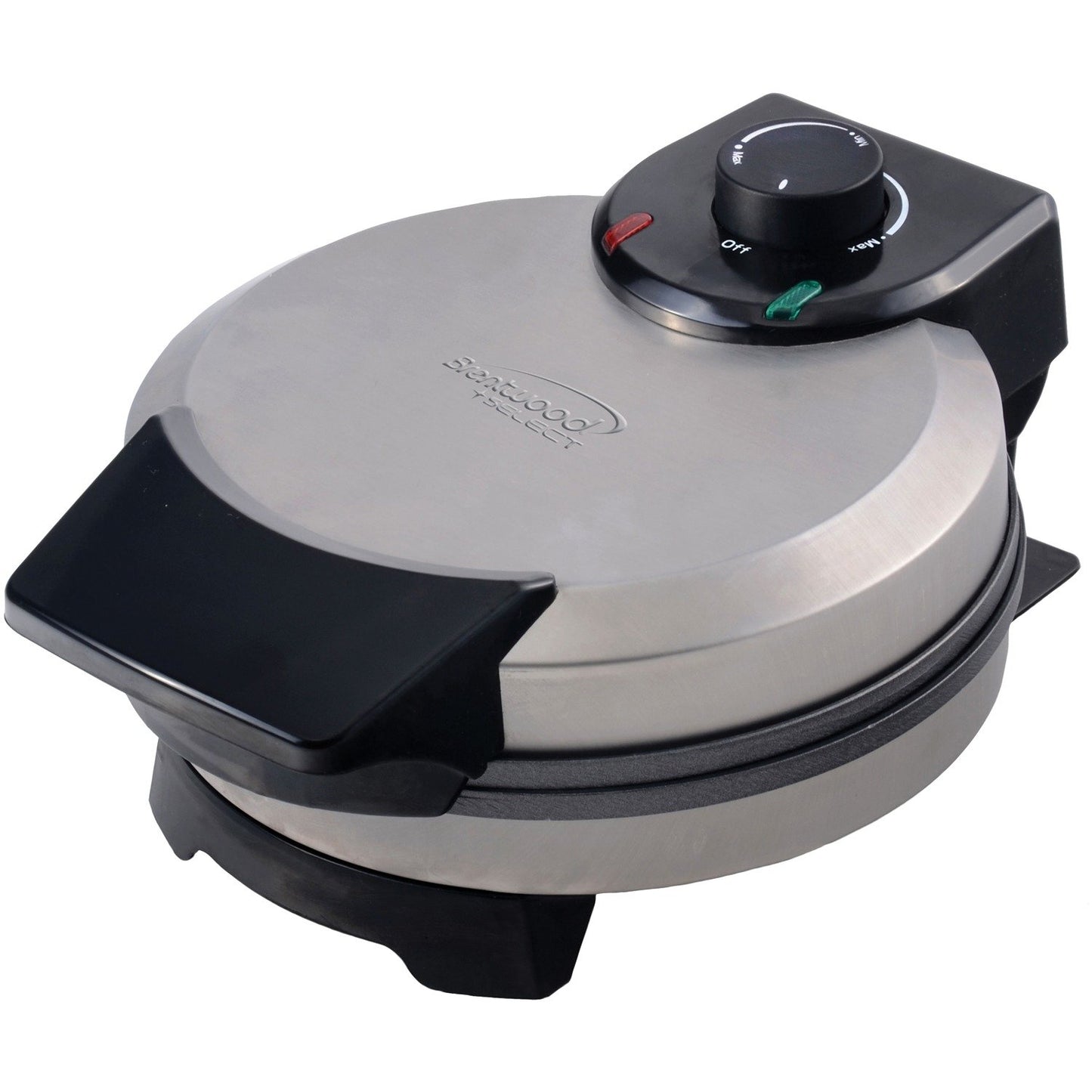 The powerful 1,000 watt Brentwood Select TS-230S 7 in. Nonstick Belgian Waffle Maker cooks a 7 in. waffle in just 3 to 5 minutes. The waffle slides right out of the easy to clean nonstick plates. This waffle maker includes convenient power and heat indicator lights and stores upright for compact storage.