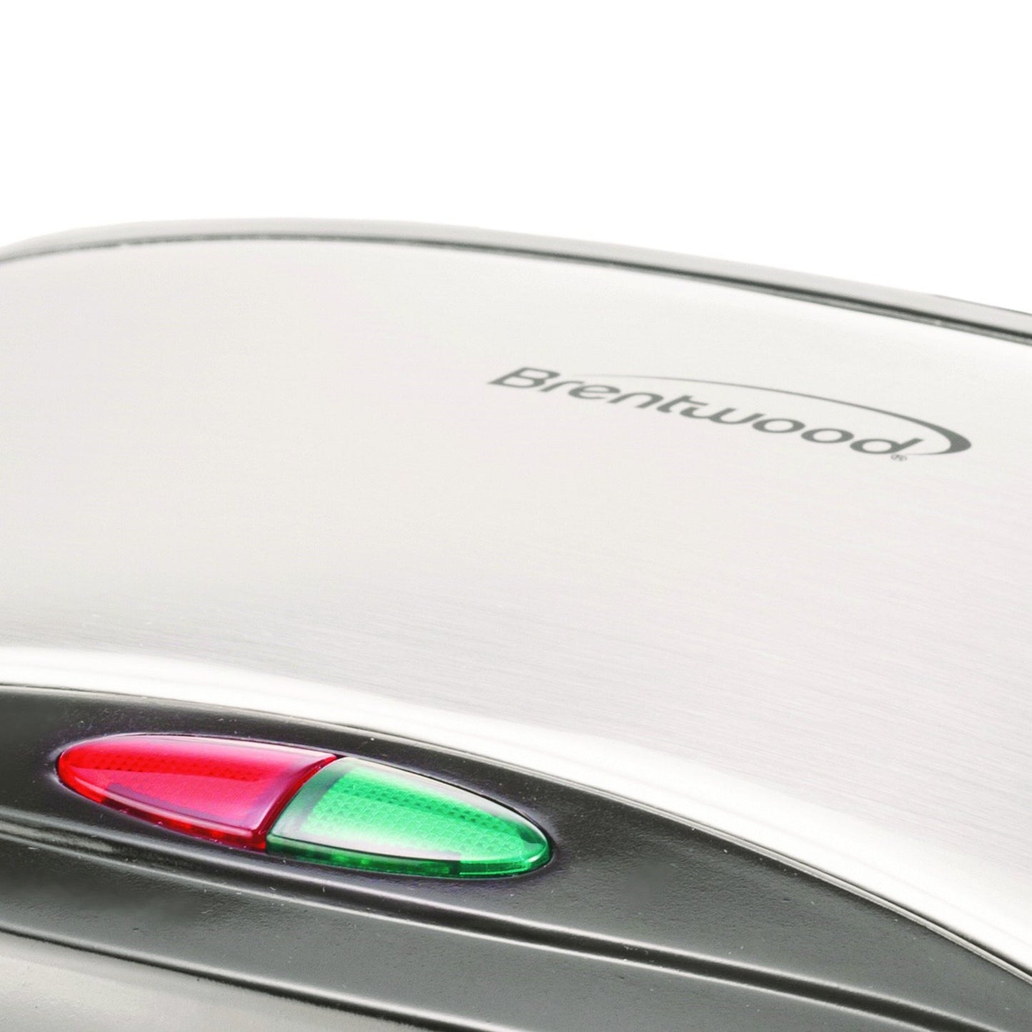 The powerful 750 watt Brentwood Appliances' Black Nonstick Dual Waffle Maker cooks 2 waffles in just 6 to 10 minutes! Waffles slide right off of the easy to clean nonstick plates. Indicator lights show power and ready status so you know when the black waffle maker is ready to accept the batter. This waffle maker even stores upright for compact storage.