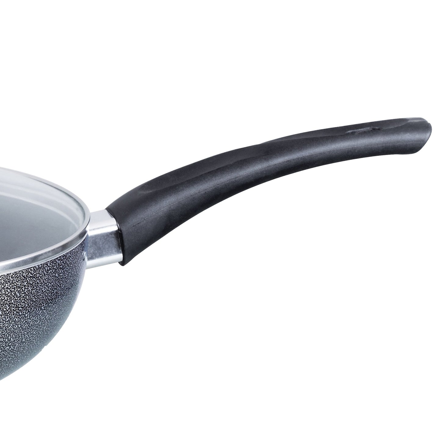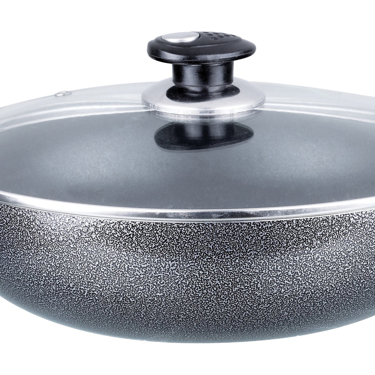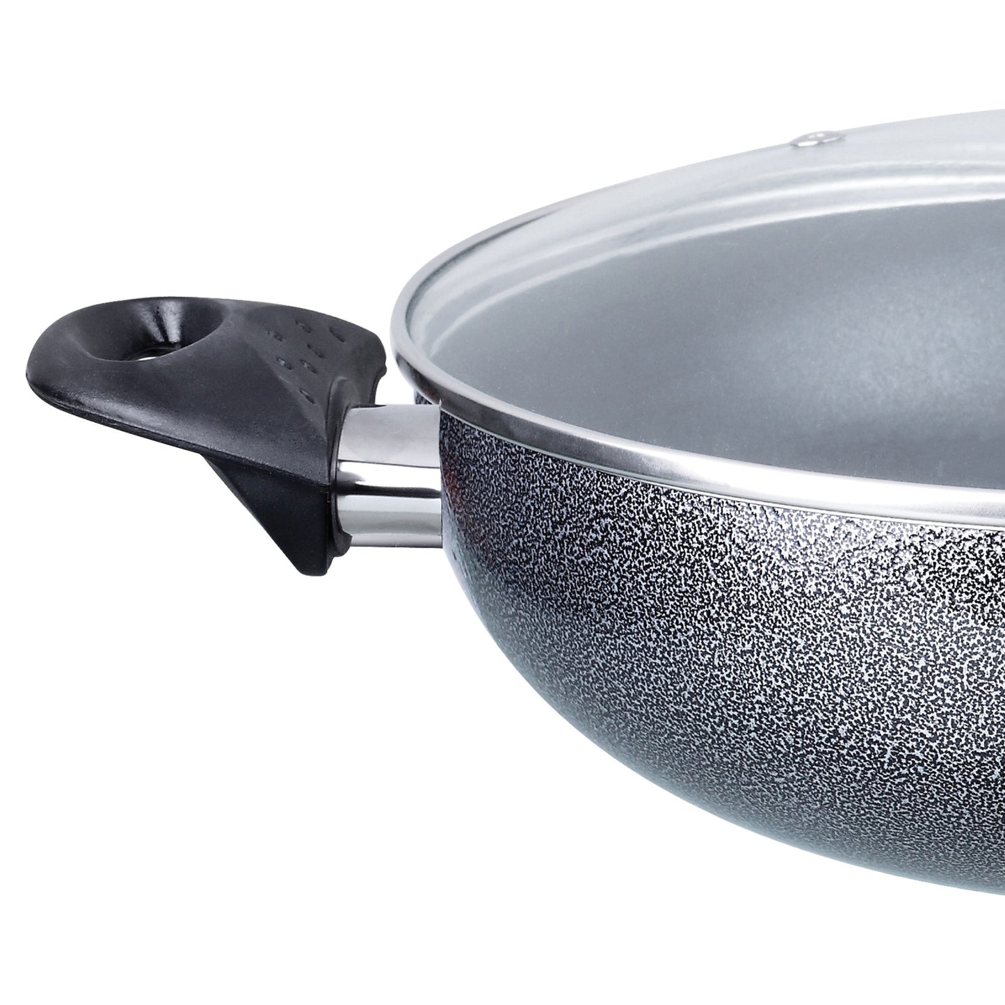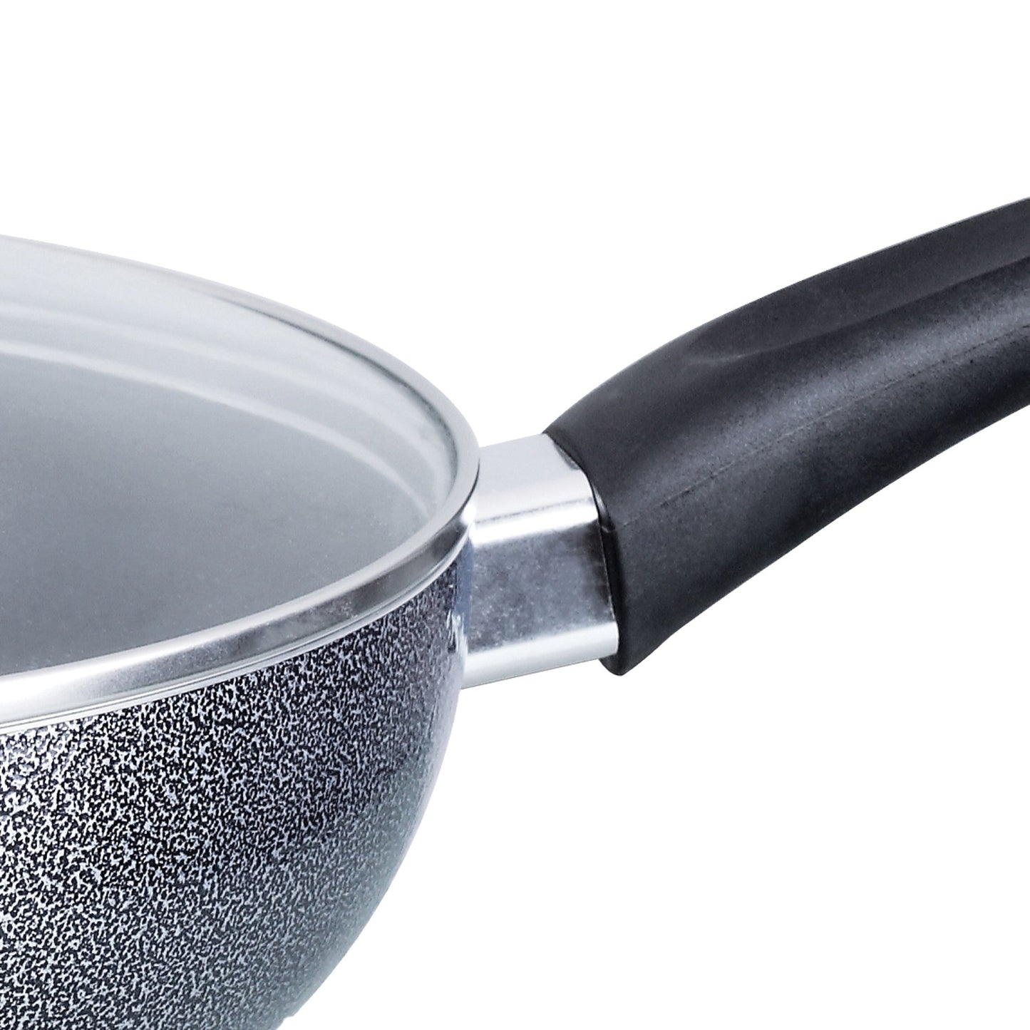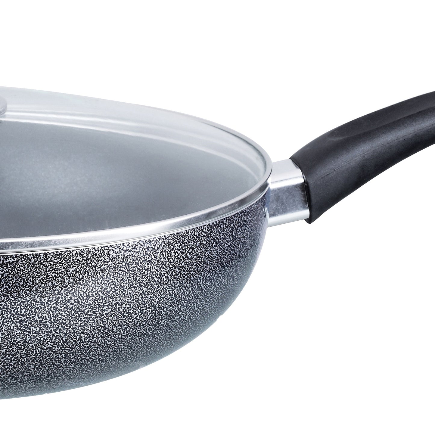 Stir fry, pan fry, and steam all your favorite meats and veggies with the Brentwood Nonstick Aluminum Wok with Lid. This wok is the ideal addition to your kitchen, accommodating cooks of all skill levels, and its tempered-glass lid lets you see what's cooking! The nonstick surface makes cooking and cleaning a breeze, while the heat resistant handle is riveted for long term durability. This 12 in. Wok's granite-textured finish adds a modern aesthetic to your kitchen. Place it in the dishwasher for effortless clean up.