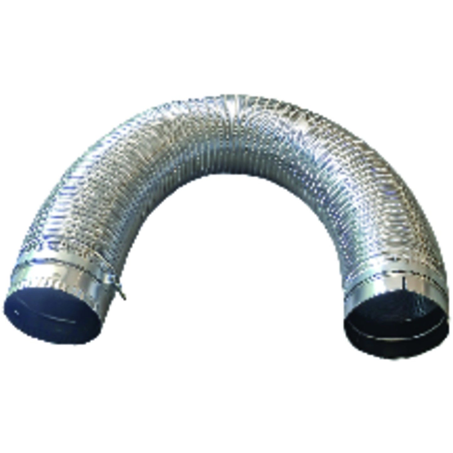 This 8 ft. Dryer Vent Duct has a 4" diameter. It is made of aluminum, semirigid in design and has snap-lock fittings on each end.
