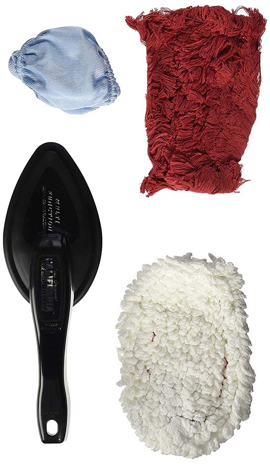 Slip on the blue microfiber bonnet to clean windshields and glass