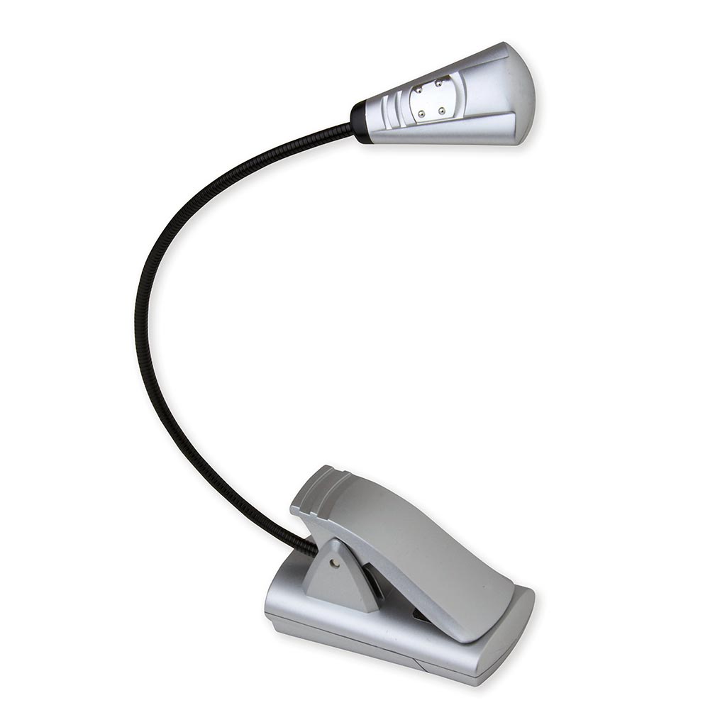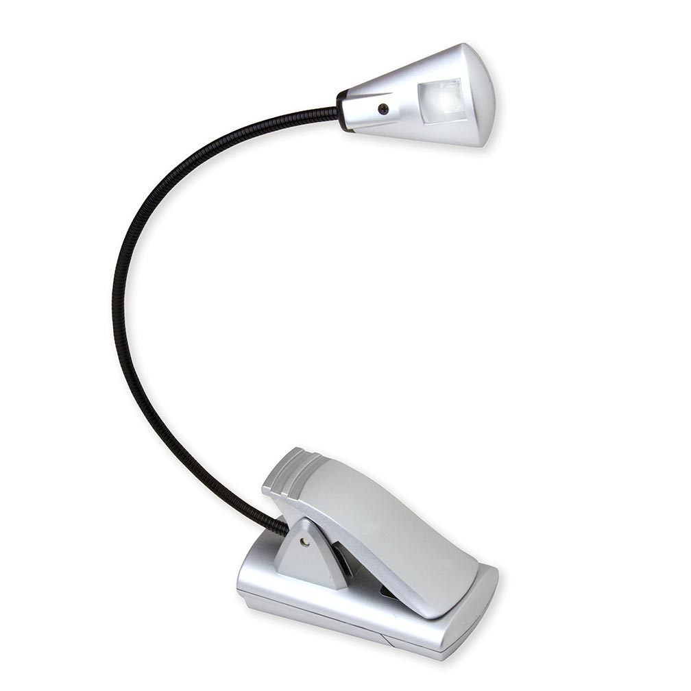 The Booklight clips to any size book or magazine, and can be used for convenient table-top illumination.