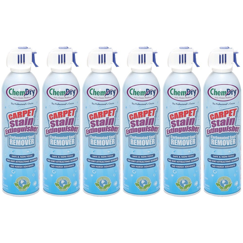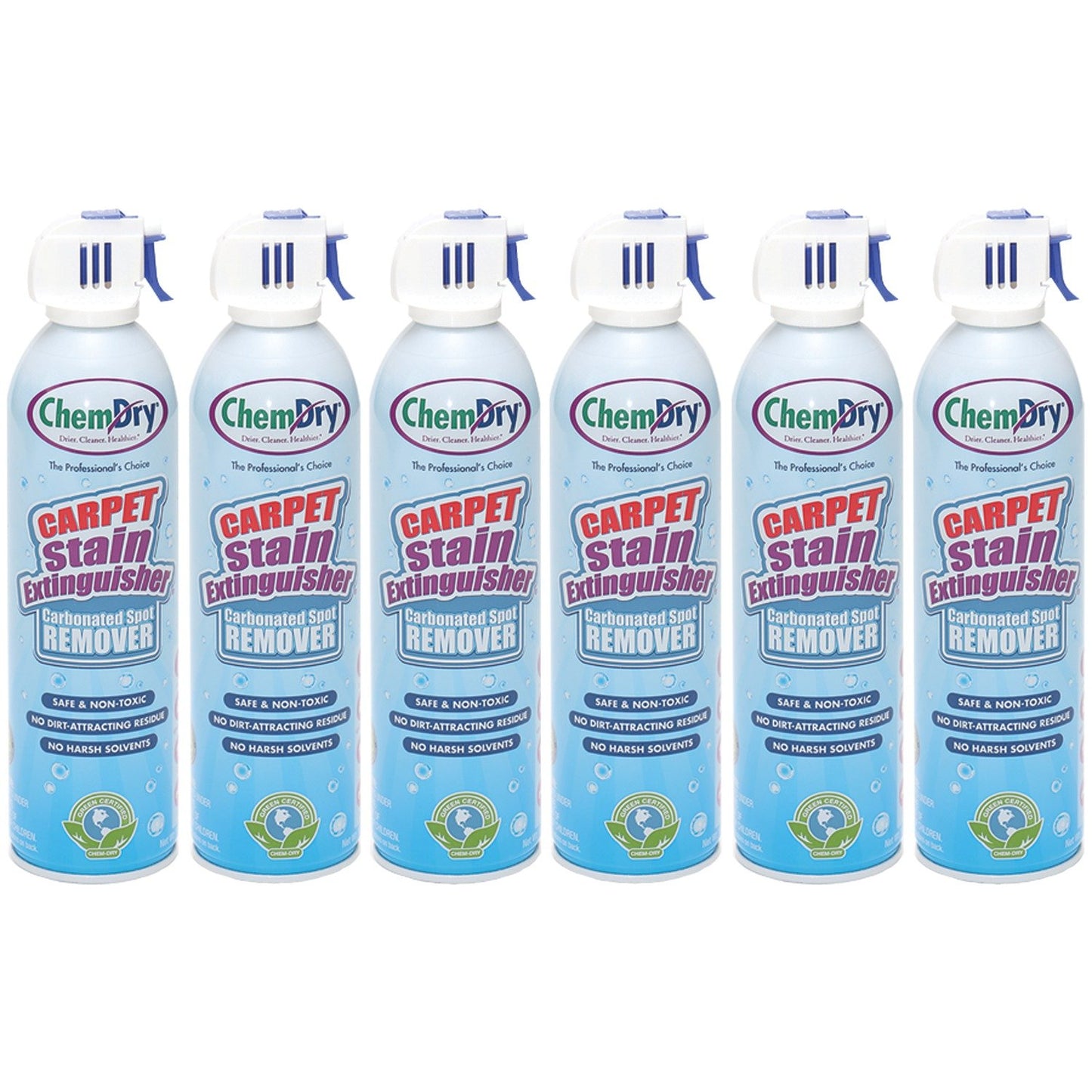 Chem-Dry's Stain Extinguisher quickly and thoroughly removes most stubborn spots from carpets, upholstery, auto interiors and even clothing. It's a water-based cleaner ideal for dirt and most common food spills such as ketchup, syrups, soda pop, chocolate and more. It will keep your carpets and fabrics smelling fresh and looking great between professional cleanings. This is a pack of six and is packaged for Ecommerce.