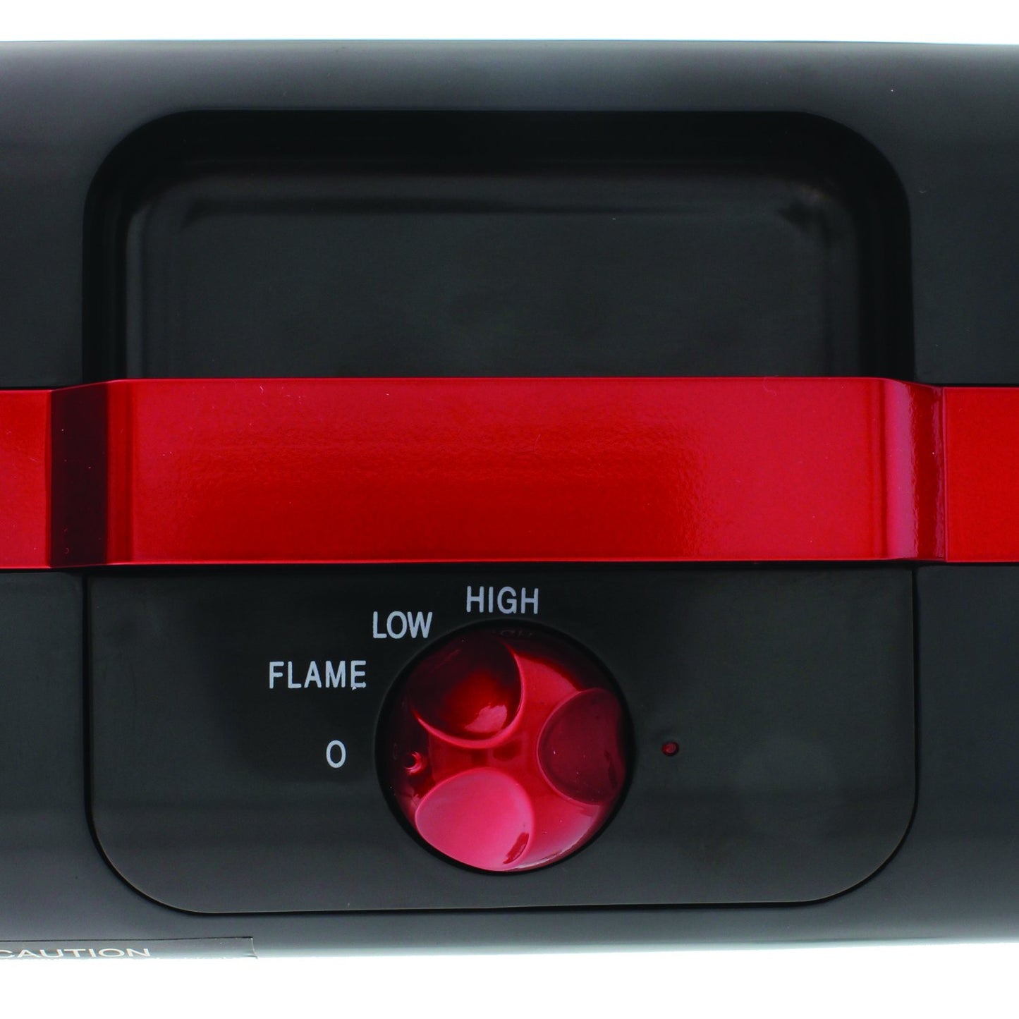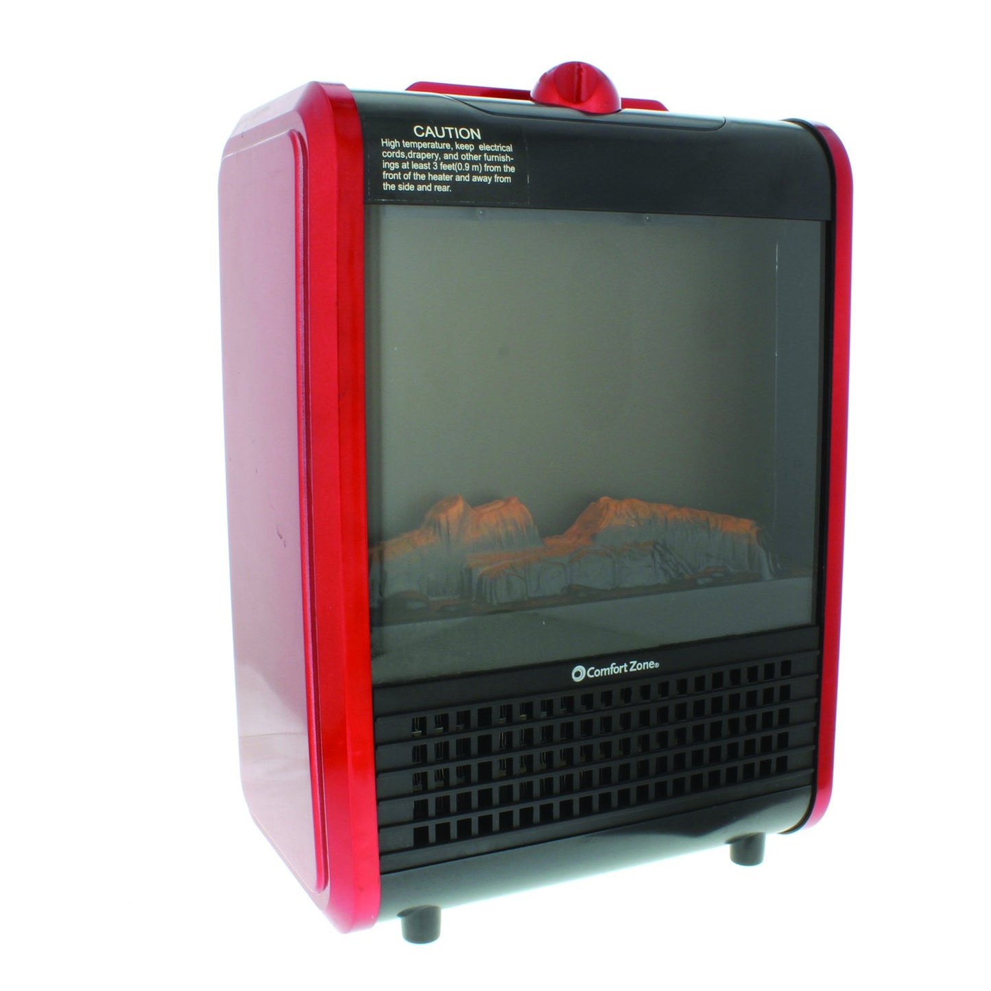 Heat up your space in style with the Comfort Zone Mini Ceramic Tabletop Electric Fireplace Heater. This stylish portable fireplace heater features a 3D flame effect with a bright ember bed, filling your room with the peaceful glow of a real fire. The powerful 1,200 Watt tabletop heater includes 2 settings, allowing you to control the air output to achieve optimal temperature in your space. The flame effect can also be operated as a night-light without the electric heater. For safety and peace of mind, the tip-over switch cuts the unit's power in the case it is accidentally knocked over, and the overheat protection sensor automatically shuts off the heater in the event of a possible fire. The sleek body stays cool to the touch while in operation, allowing you to pick it up by the molded handle and move it to another room with ease. From your home office to your bedroom, you can bring this portable fireplace heater with you anywhere heat is needed.