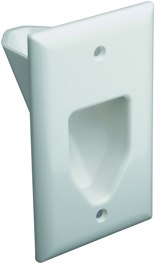 With DataComm Electronics' white 1-Gang Recessed Cable Plate you can install low voltage cables behind your flat panel TV, your amplifier or other audio/video devices, flush to the wall surface.