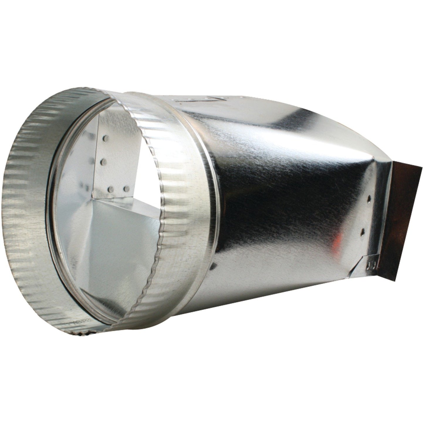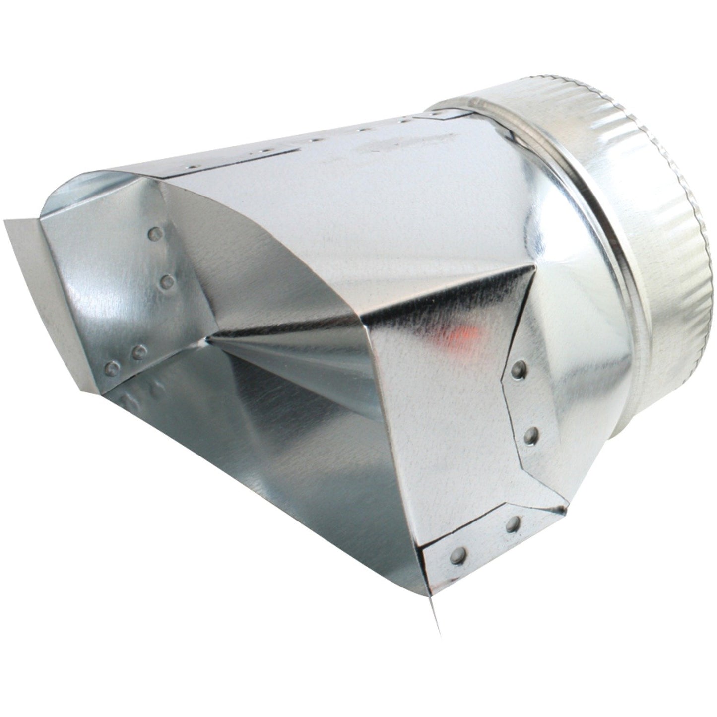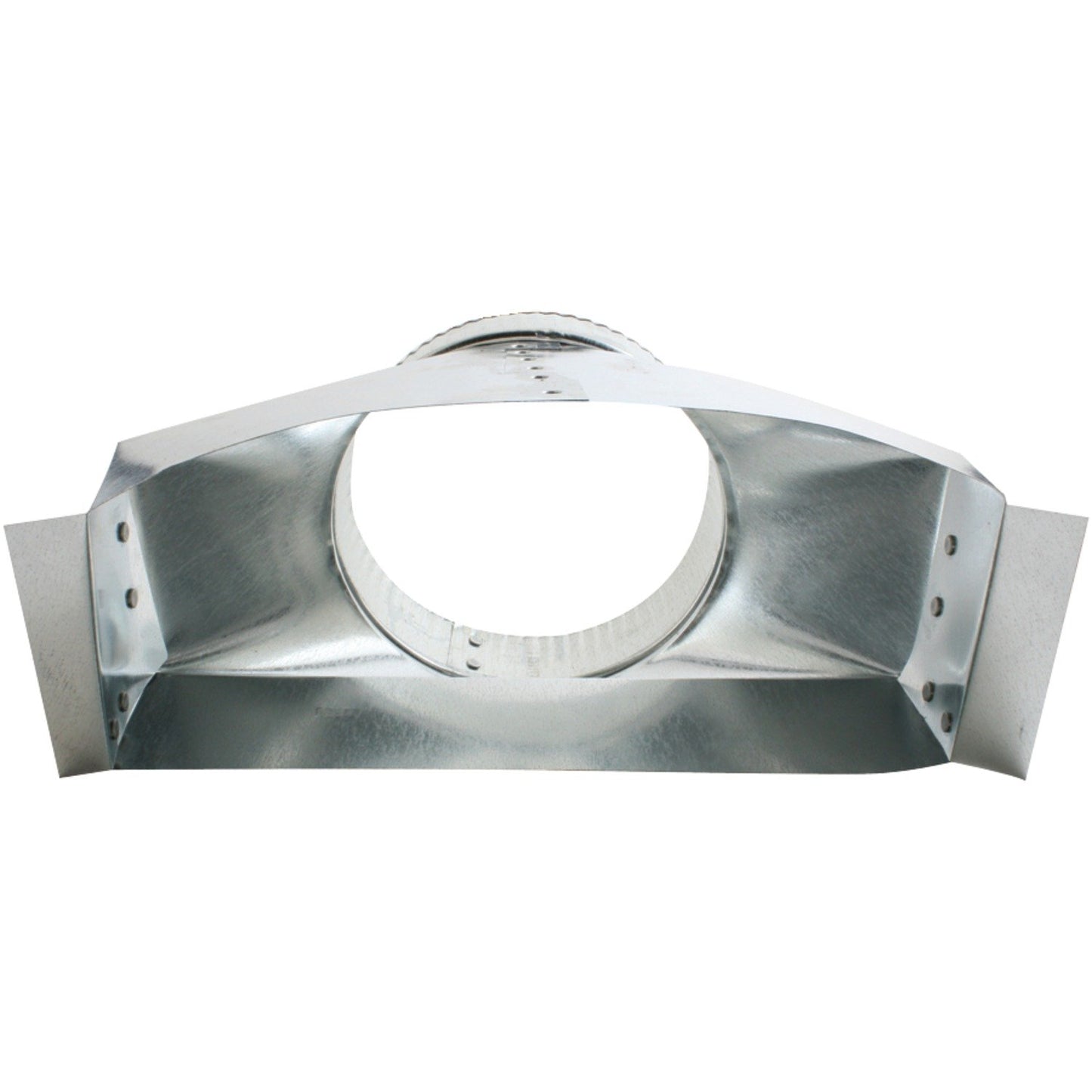 The Galvanized Round Transition (3.25 in. x 10 in. to 6 in. dia.) from Deflecto connects a round duct to a rectangular duct. It is constructed from all galvanized steel, and has rolled edges for safety.