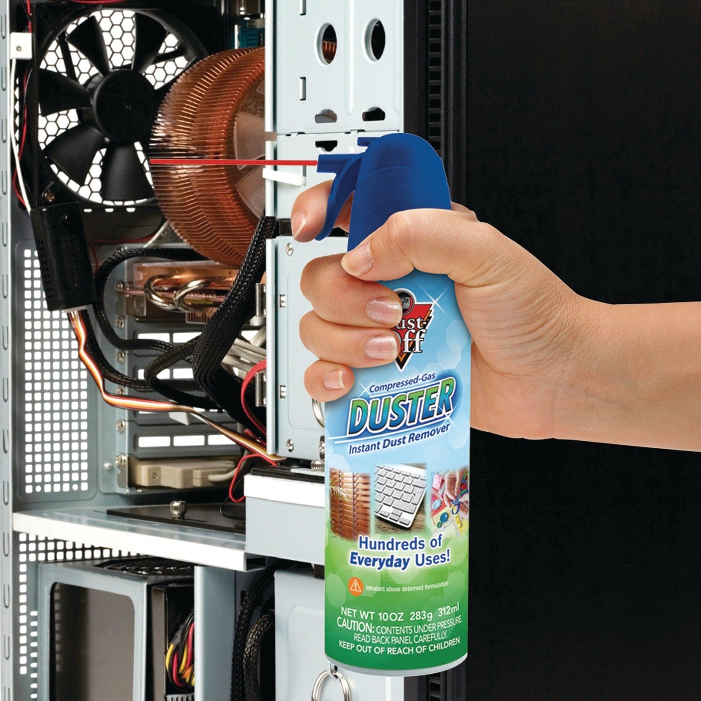 The 10 oz. Dust Off Disposable Duster provides potent dust-removing power for practically any task. It's ideal for cleaning technology like keyboards, notebooks and personal computers. It's also great for cleaning household items. An extension tube is included for reaching otherwise inaccessible places.