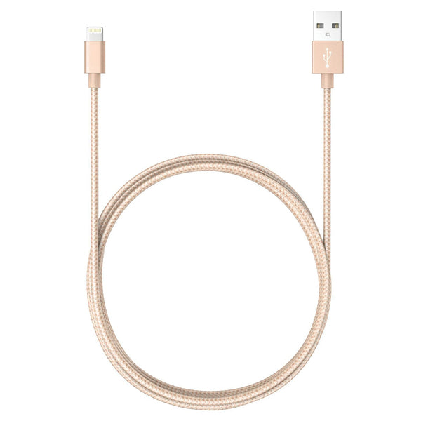 • Braided cable designed to be pliable and durable;• Charges iOS(TM) devices as well as syncs files between device and computer;• MFi certified to meet exacting performance standards, allows for high-speed transfer of data, such as music, photos, and more, from 1 device to another;• Gold color;• 3 ft.;