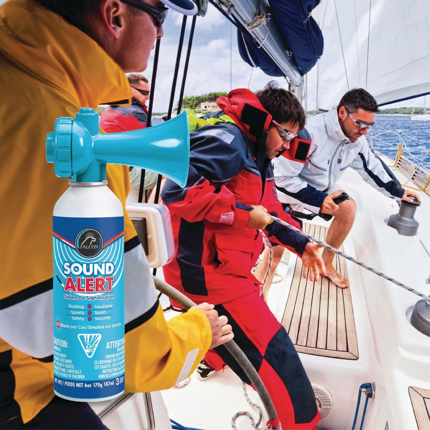 The 6 oz. Signal Horn from Falcon is ideal for sporting events, paddle boating and hiking. It does meet US Coast Guard requirements for use on boats up to 65 ft. It should not be used near flames or in a situation where it could be exposed to extreme temperatures.