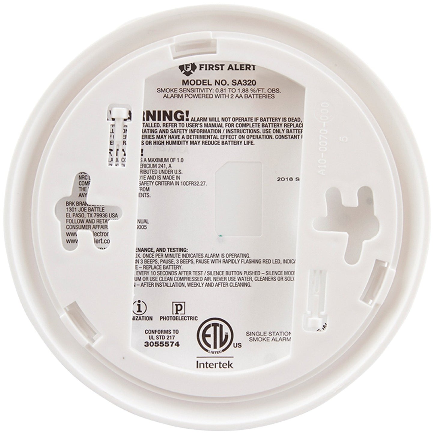 The First Alert SA320CN Dual-Sensor Smoke and Fire Alarm provides early warning of both flaming and smoldering fires. Additionally, its intelligent sensing technology is designed to cut down on false alarms from cooking smoke or other common false-alarm triggers. A single button both silences and tests the smoke detector for simple operation. The battery-powered fire detector can be easily installed anywhere without wires.