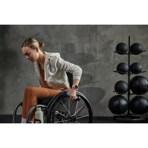 • Designed with bright, colorful 1.2-in. AMOLED display for a more complete picture of your health; rugged lens made of Corning(R) Gorilla(R) Glass 3;• BodyBattery(TM) energy monitoring helps you understand when you're charged up or need to rest, with even more personalized insights based on sleep, naps, stress levels, workouts, and more (data presented is intended to be a close estimation of metrics tracked) ;• Get a sleep score and personalized sleep coaching for how much sleep you need -- and get tips on how to improve plus key metrics such as HRV status to better understand your health (data presented is intended to be a close estimation of metrics tracked) ;• Find new ways to keep your body moving with more than 30 built-in indoor and GPS sports apps, including walking, running, cycling, HIIT, swimming, golf, and more ;• Wheelchair mode tracks pushes -- rather than steps -- and includes push and handcycle activities with preloaded workouts for strength, cardio, HIIT, Pilates and yoga, challenges specific to wheelchair users, and more (data presented is intended to be a close estimation of metrics tracked);• Automatic nap detection and nap logging tracks your nap length during the day, providing personalized insights on how it affects your BodyBattery(TM) energy monitoring and more (data presented is intended to be a close estimation of metrics tracked) ;• Know your body better with extensive health monitoring features, including wrist-based heart rate, morning report, fitness age, stress tracking, menstrual cycle and pregnancy tracking, meditation, and more (data presented is intended to be a close estimation of metrics tracked) ;• Take on any fitness journey with advanced training features such as workout benefit -- which helps you understand how each workout affects your body -- and recovery time to know how long your body needs to recover and more ;• Use preloaded workouts that include cardio, yoga, strength, HIIT and Pilates; create your own in the GarminConnect(TM) smartphone app or try GarminCoach free adaptive training plans to help you prepare for your next running challenge ;• Download your favorite music to your watch, including playlists from your Spotify(R), Amazon(R) Music or Deezer(R) accounts, and connect with your wireless headphones for phone-free listening ;• Leave your cash and cards at home; GarminPay(TM) contactless payments (with a supported country and payment network) let you pay for purchases on the go and breeze through select transit systems ;• Safety and tracking features include incident detection (during select outdoor activities) and assistance, both of which can call or send a message with your live location to emergency contacts when paired with your smartphone; requires setup and your smartphone to be in an area with network coverage where data connectivity is available ;• Sync with the GarminConnect(TM) smartphone app and get more details on your health and fitness data plus personalized insights and more;• Battery life of up to 11 days in smartwatch mode; includes charging cable and documentation;• Metallic Orchid Bezel with Orchid Case and Band;