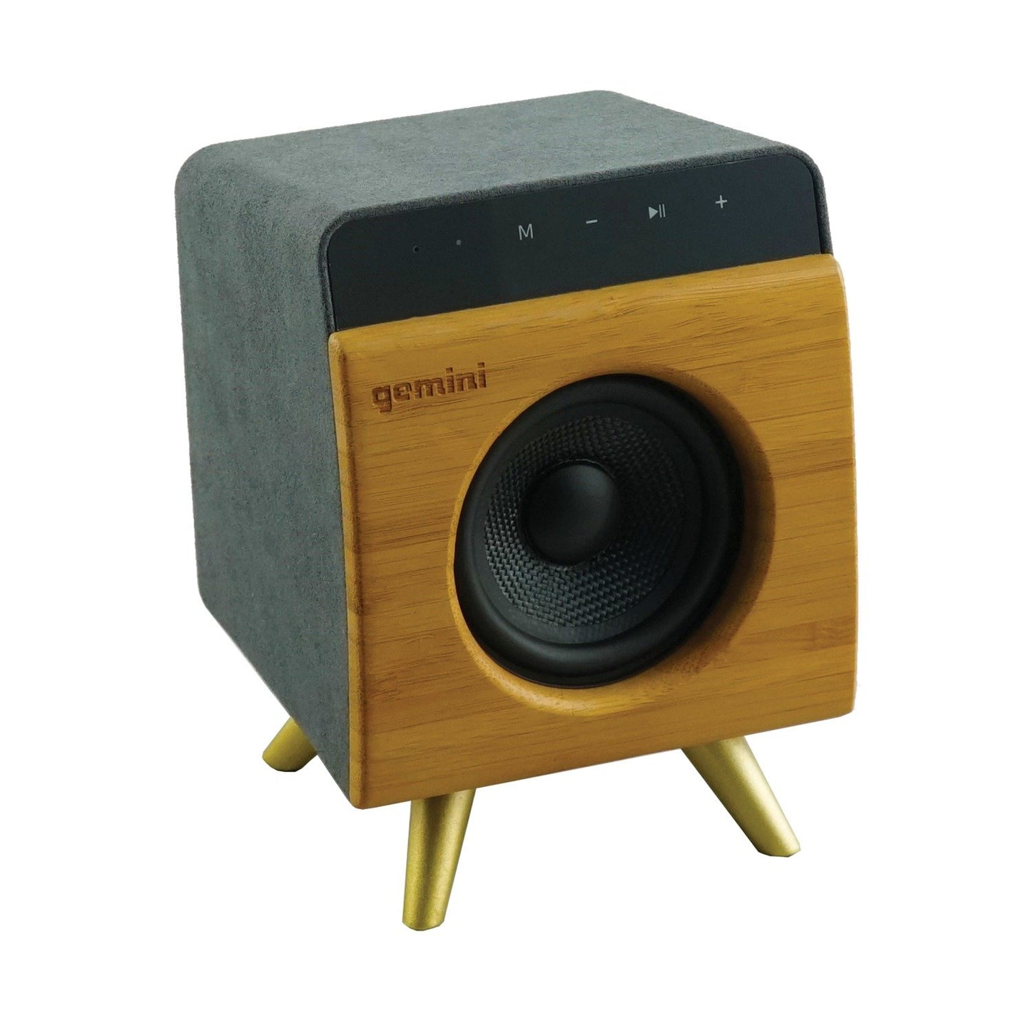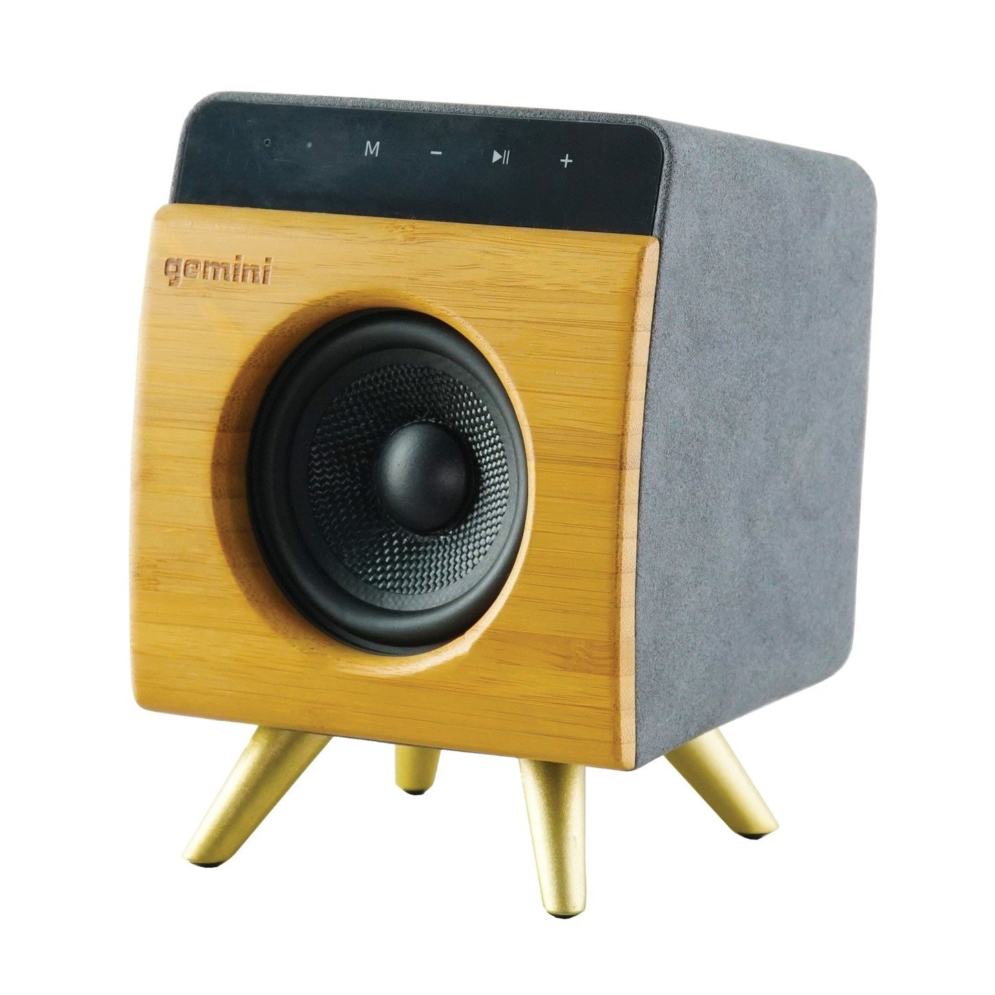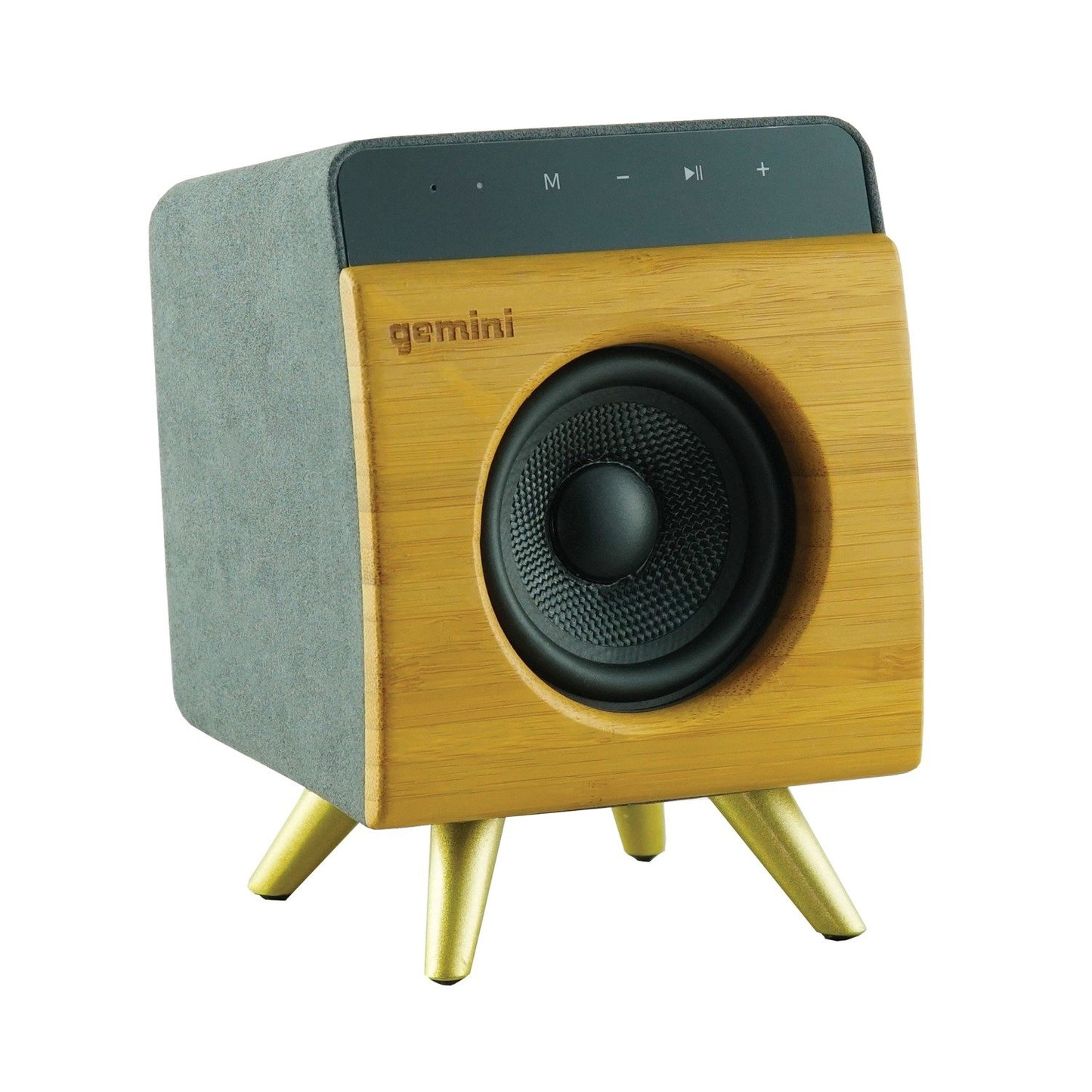 Modern look meets pitch-perfect sound with the BRS130 Portable Bluetooth Speaker from Gemini! Each speaker is handmade from a single craftsman. This speaker not only looks stunning but is equipped with innovative sound reproduction technology that fills every inch of a room. It is USB chargeable, contains an aux input, and a built-in microphone to capture the sounds of your life. The speaker is made from high-class natural bamboo, while the top and sides are made from luxurious suede. The BRS is a treat for all your senses. Engineers, designers, and craftsmen all working together bring you a product you'll be proud to own.