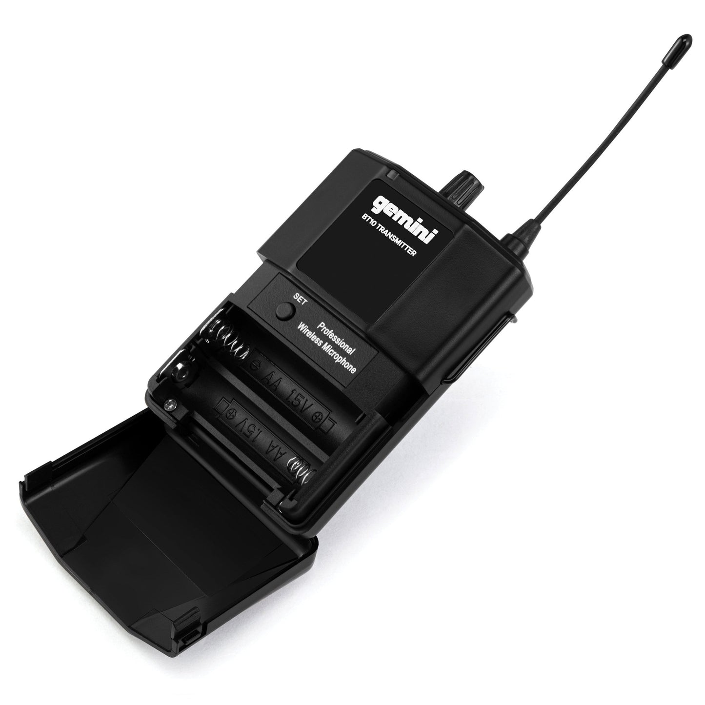 The Gemini GMU-HSL100 is a UHF wireless system with the HS10 dynamic headset microphone, the LAV10 lavalier microphone, the BT10 wireless transmitter body pack, and the R10 receiver. This expandable plug and play system will meet all your wireless needs, with USB rechargeable receiver and long-distance wireless connection. Just plug in, power on, and you’re ready to rock! Choose either the lavalier or headset microphone, depending on your preference, and connect to the transmitter. Gemini’s GMU wireless system is ideal for many applications, including but not limited to karaoke, busking, weddings, conferences, streaming, and podcasting. For untethered audio connections in a variety of settings, chooses this high-quality wireless system from Gemini.