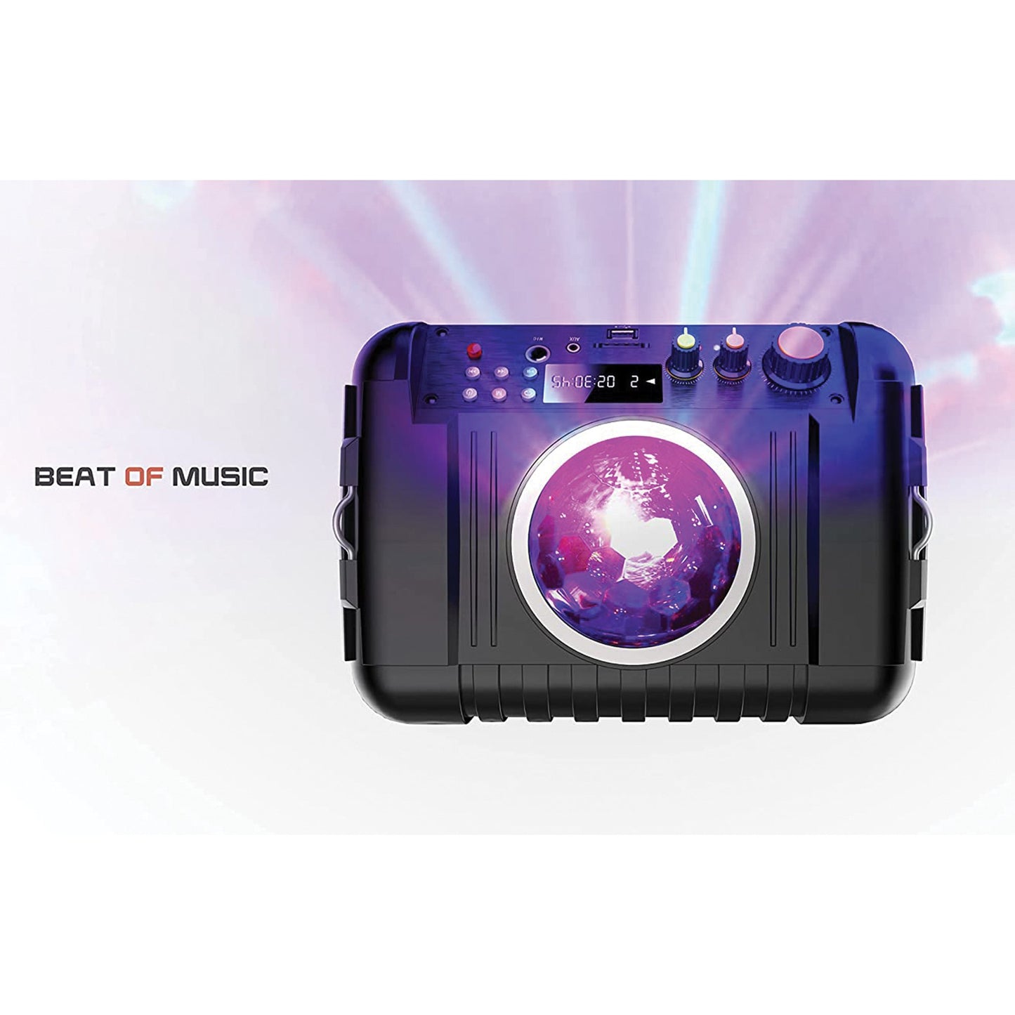 The MPA-K650 is a Karaoke Portable Party System with Bluetooth, USB, SD Card and FM radio playback plus aux and microphone inputs—all in an ultra-portable package. Bring your party to life with its dazzling LED speaker panel and disco dome light! Party lights can be turned on or off from the speaker's front panel. The MPA-K650 packs 150 watts peak power into a compact package, pushing a 6-1/2 in. woofer for sound that’s loud yet clean. Adjustable microphone volume and echo effect allow you to dial in your preferred sound. A wired microphone is included! The long-lasting battery with AC charge port and an easy carry strap provide ultra portability. The wireless remote allows you to move about the party untethered while staying in control of the sound. Bring your party to life with the MPA-K650.