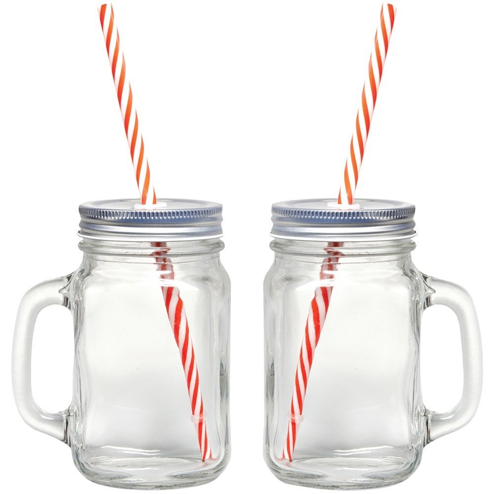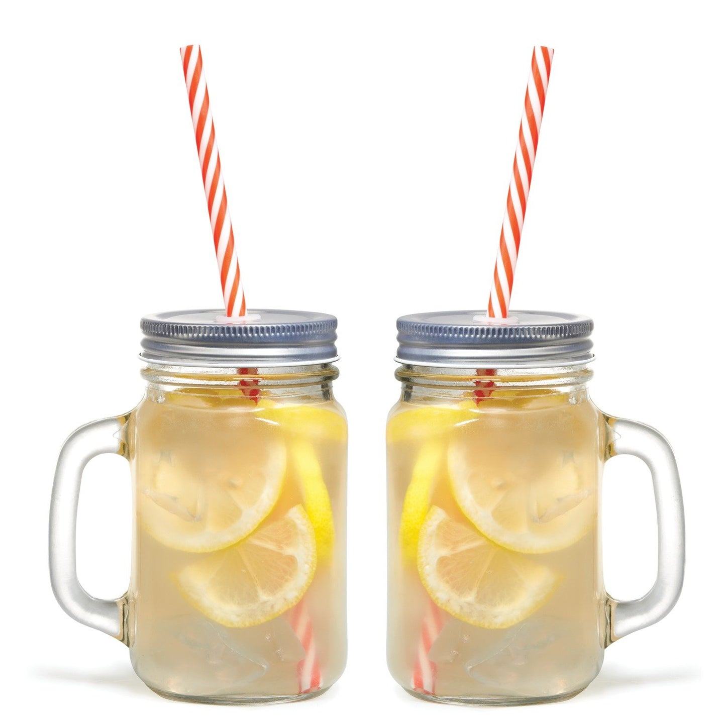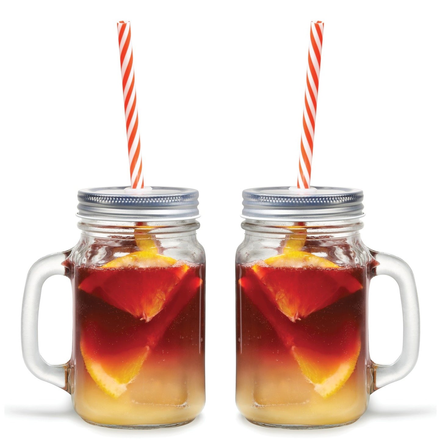 Enjoy sipping all your favorite beverages in these vintage-style glass Mason Jar Mugs from Starfrit. Their generous 16 ounce capacity makes them the ideal drinkware for your garden parties. The straws are reusable!